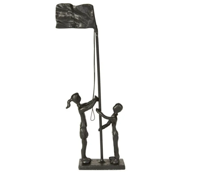 Figur med to der hejser flaget.