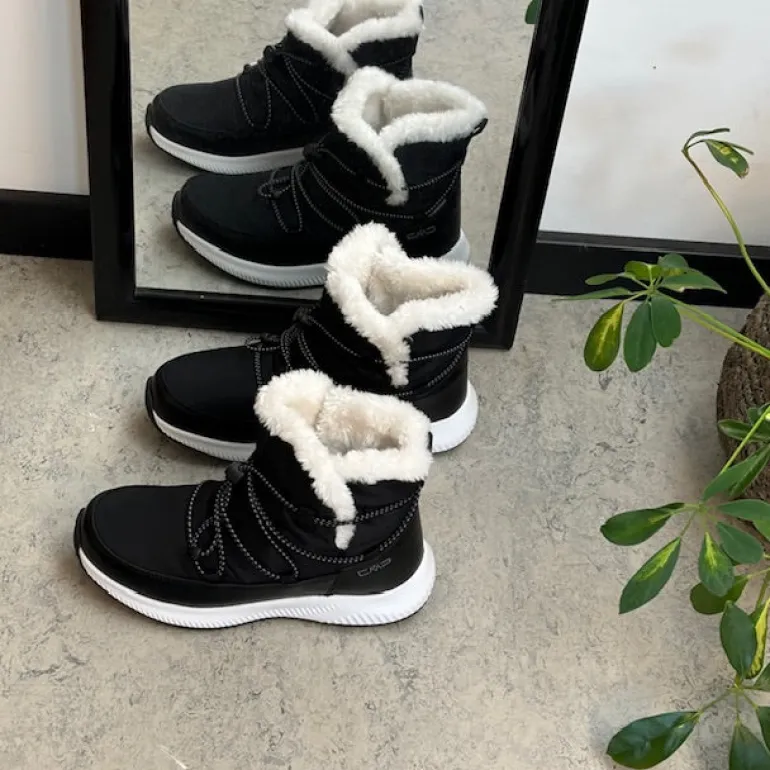 Denne vandafvisende sorte vinterstøvle fra CMP kombinerer stilrent design med praktisk funktionalitet, hvilket gør den ideel til vintervejr.