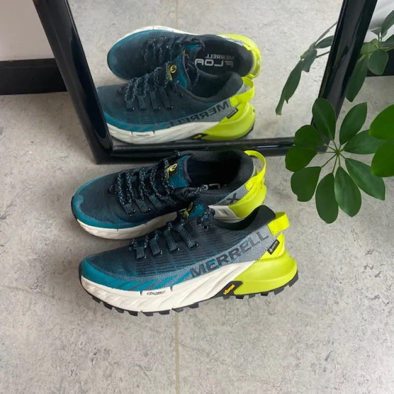 Vandre/Løbesko Agility Peak 4 fra Merrell med vibram ydersål med Trail profil, som sikre at du står godt fast i underlaget.